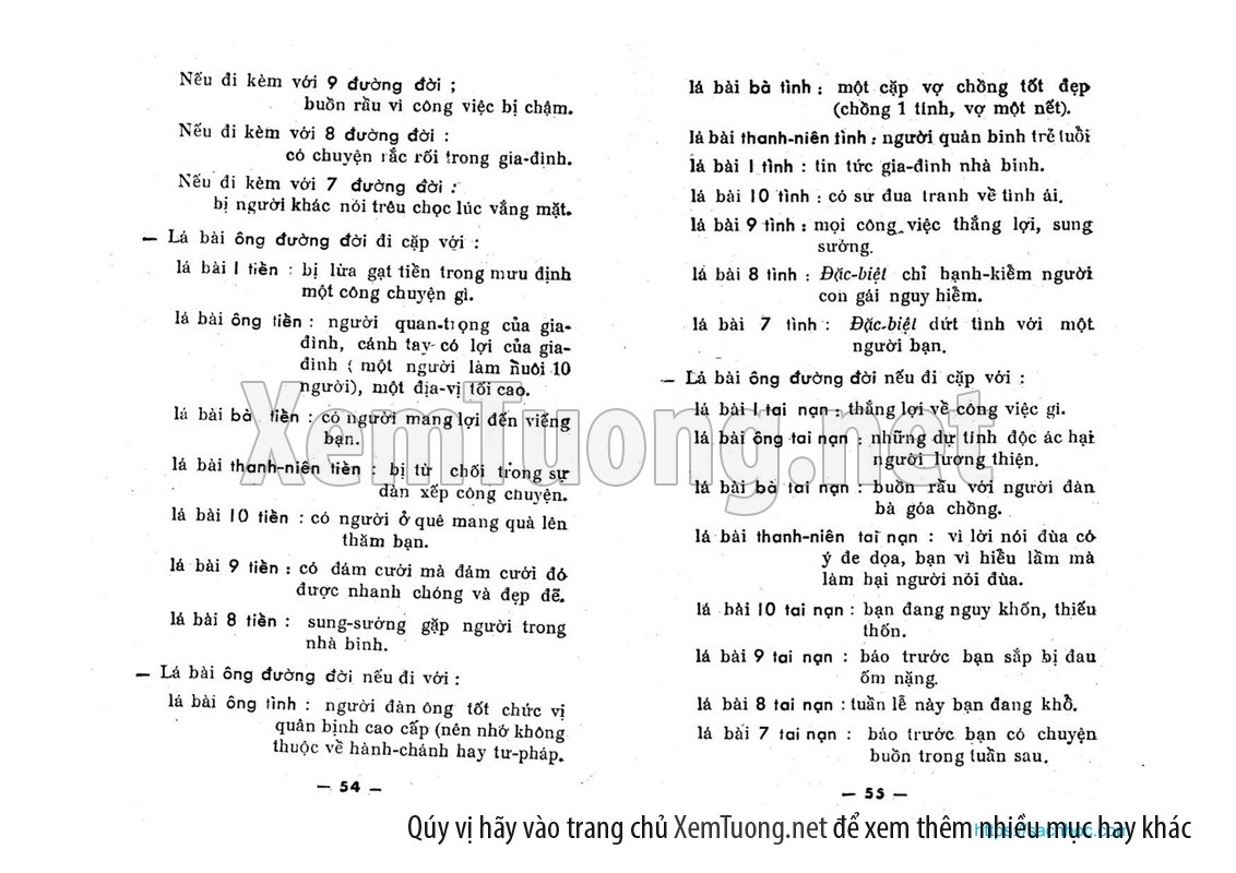Một lá bài, tức lá bài thứ 31 tượng trưng cho người xem, còn lá bài còn lại tức lá bài thứ 32 tượng trưng cho vợ hay chồng. Nếu chưa có chồng hoặc vợ thì lá bài thứ 32 có thể tượng trưng cho người yêu của người xem.