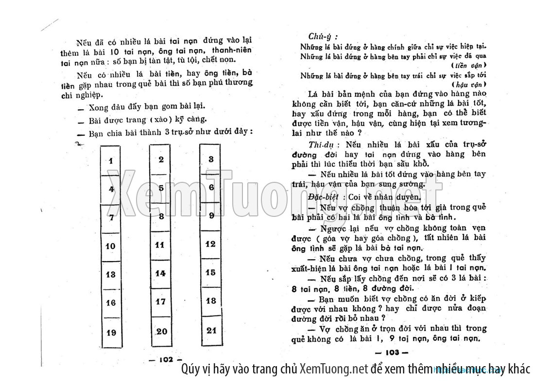 Một lá bài, tức lá bài thứ 31 tượng trưng cho người xem, còn lá bài còn lại tức lá bài thứ 32 tượng trưng cho vợ hay chồng. Nếu chưa có chồng hoặc vợ thì lá bài thứ 32 có thể tượng trưng cho người yêu của người xem.