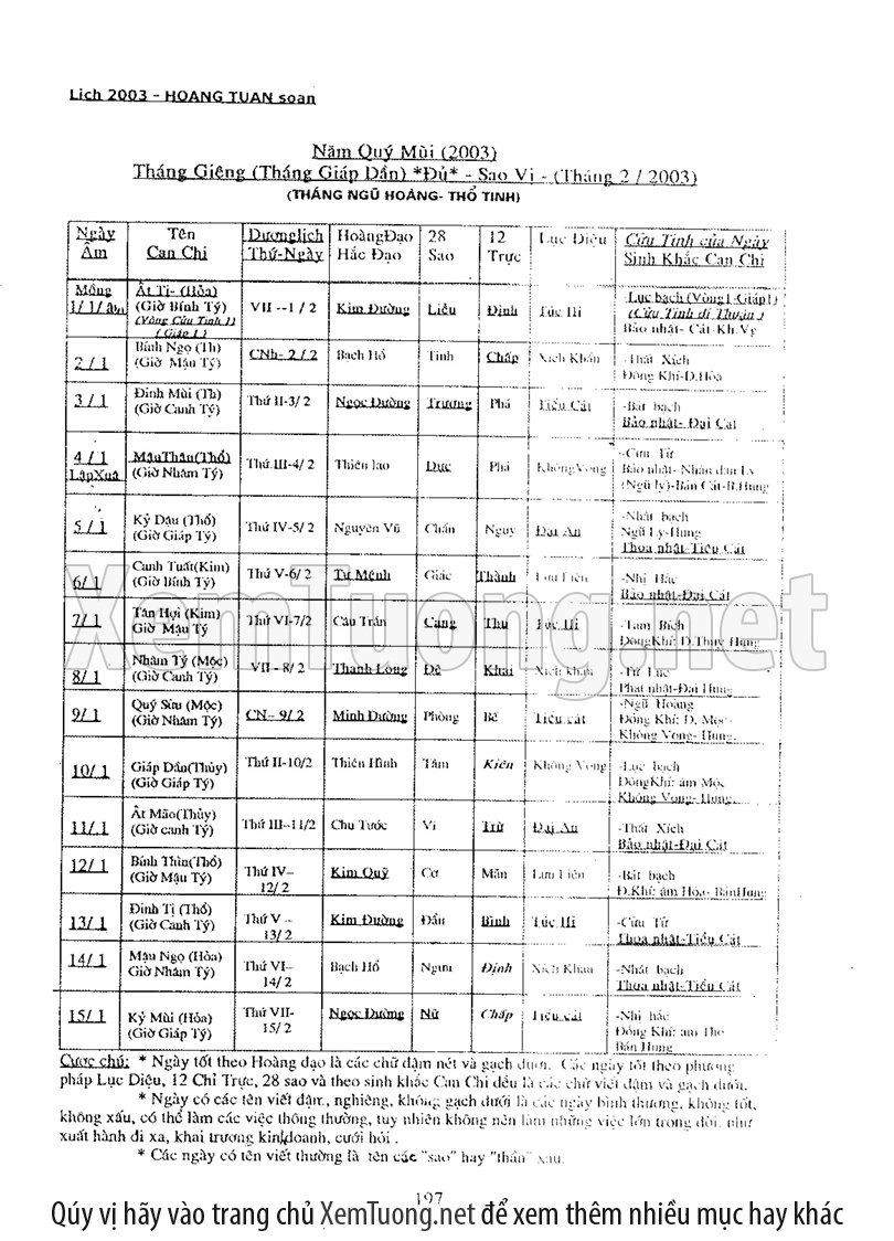 • Xem Ngày Tốt Xấu Vạn Sự: Cung cấp thông tin chính xác về ngày Hoàng đạo, Hắc đạo, giờ tốt xấu (theo các phương pháp cổ truyền như Tam Tông Miếu, Khổng Minh Lục Diệu...) để bạn lựa chọn được thời điểm lý tưởng cho mọi công việc quan trọng.