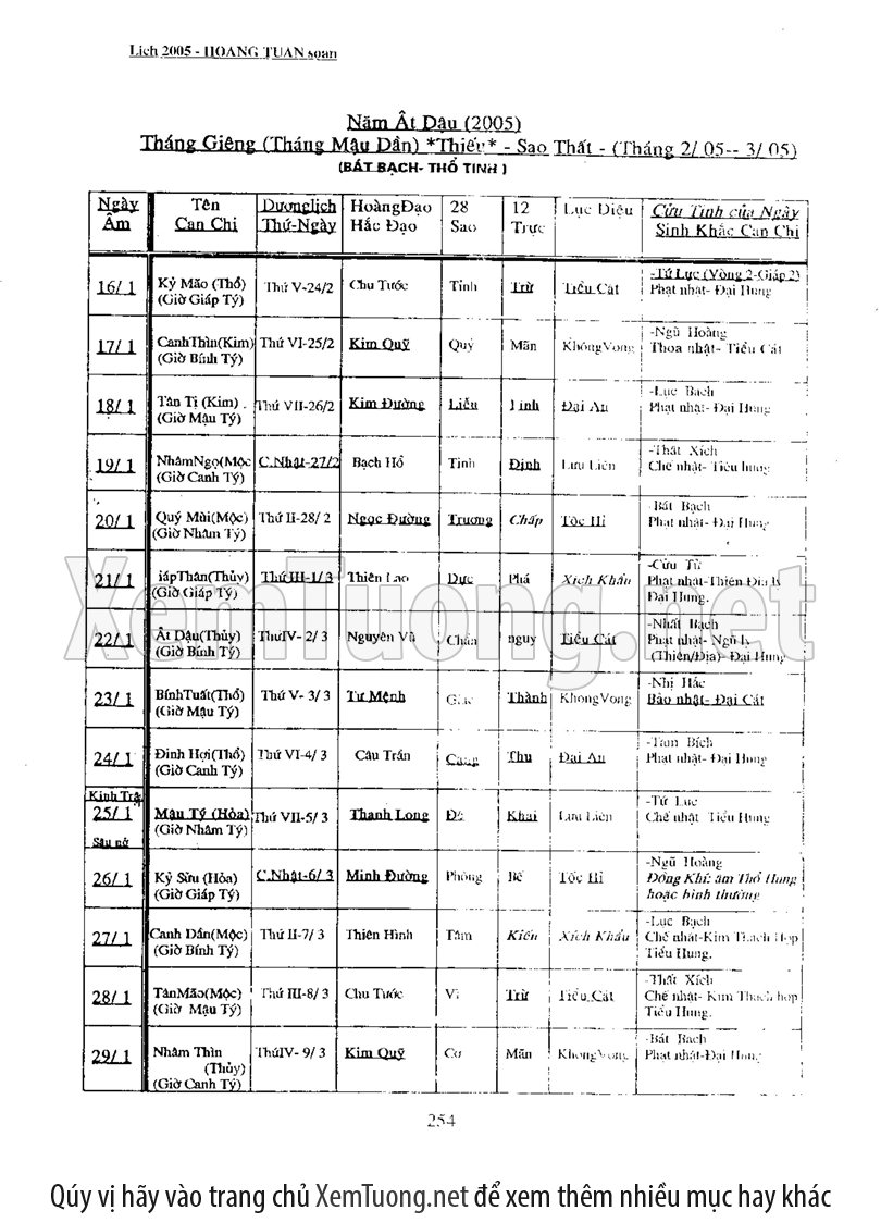 • Xem Ngày Tốt Xấu Vạn Sự: Cung cấp thông tin chính xác về ngày Hoàng đạo, Hắc đạo, giờ tốt xấu (theo các phương pháp cổ truyền như Tam Tông Miếu, Khổng Minh Lục Diệu...) để bạn lựa chọn được thời điểm lý tưởng cho mọi công việc quan trọng.