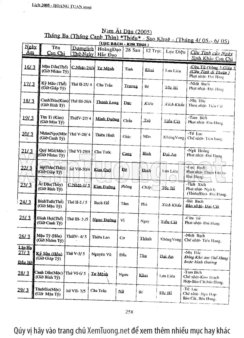 • Xem Ngày Tốt Xấu Vạn Sự: Cung cấp thông tin chính xác về ngày Hoàng đạo, Hắc đạo, giờ tốt xấu (theo các phương pháp cổ truyền như Tam Tông Miếu, Khổng Minh Lục Diệu...) để bạn lựa chọn được thời điểm lý tưởng cho mọi công việc quan trọng.
