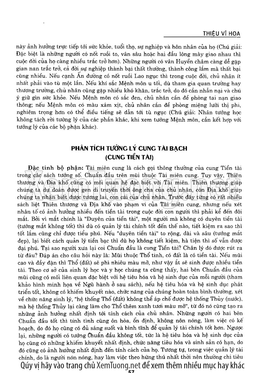 Sách "Tìm hiểu nhân tướng học theo kinh dịch" của tác giả Thiệu Vĩ Hoa cho chúng ta một cách nhìn toàn diễn về bản chất của thuật nhân tướng. Hầu hết chúng ta khi nói đến tướng thuật đều nghĩ đến khuôn mặt. Tuy nhiên như vậy có nghĩa là chỉ quan tâm đến phần hình dạng bên ngoài mà chưa chú trọng đến bản chất bên trong của thuật nhân tướng. Tướng thuật là nhìn tướng một người mà đoán được tuổi thọ, tài lộc, vận hạn... của họ, thậm chí của tổ tiên, cha mẹ, anh chị em trong gia đình người đó.