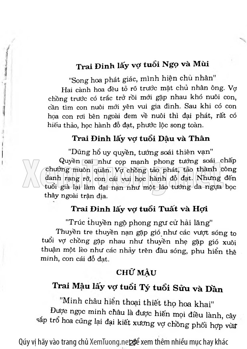 Sách số Coi tuổi làm nhà và Dựng vợ gả chồng giải thích một cách kỹ lưỡng về tuổi kết hôn đẹp và những người hợp tuổi nhau, minh chứng cho điều đó là cuốn sách hướng dẫn xem tuổi cưới vợ do tác giả Huỳnh Liên đã viết rất cặn kẽ về ngũ hành tương sinh, ngũ hành tương khắc và tuổi tứ hành xung.