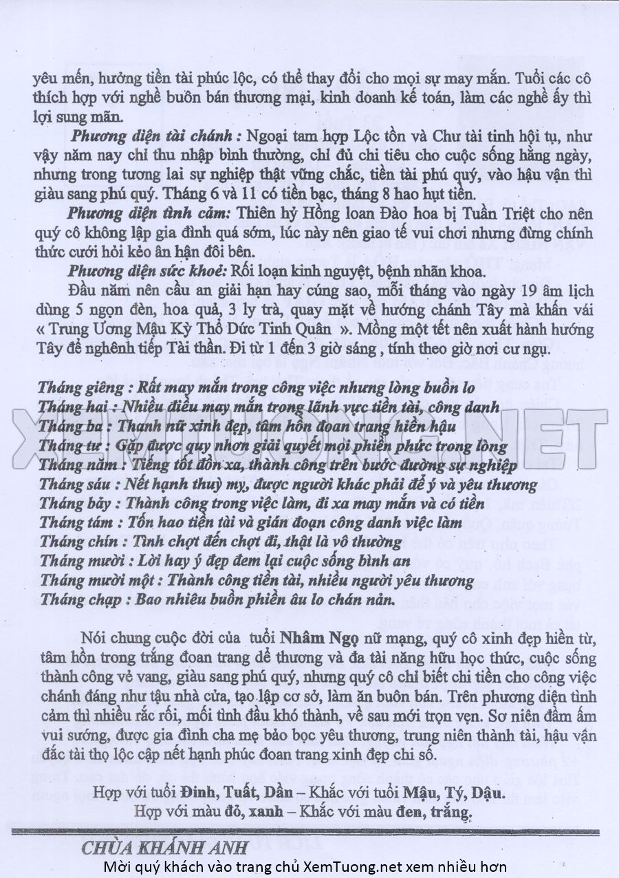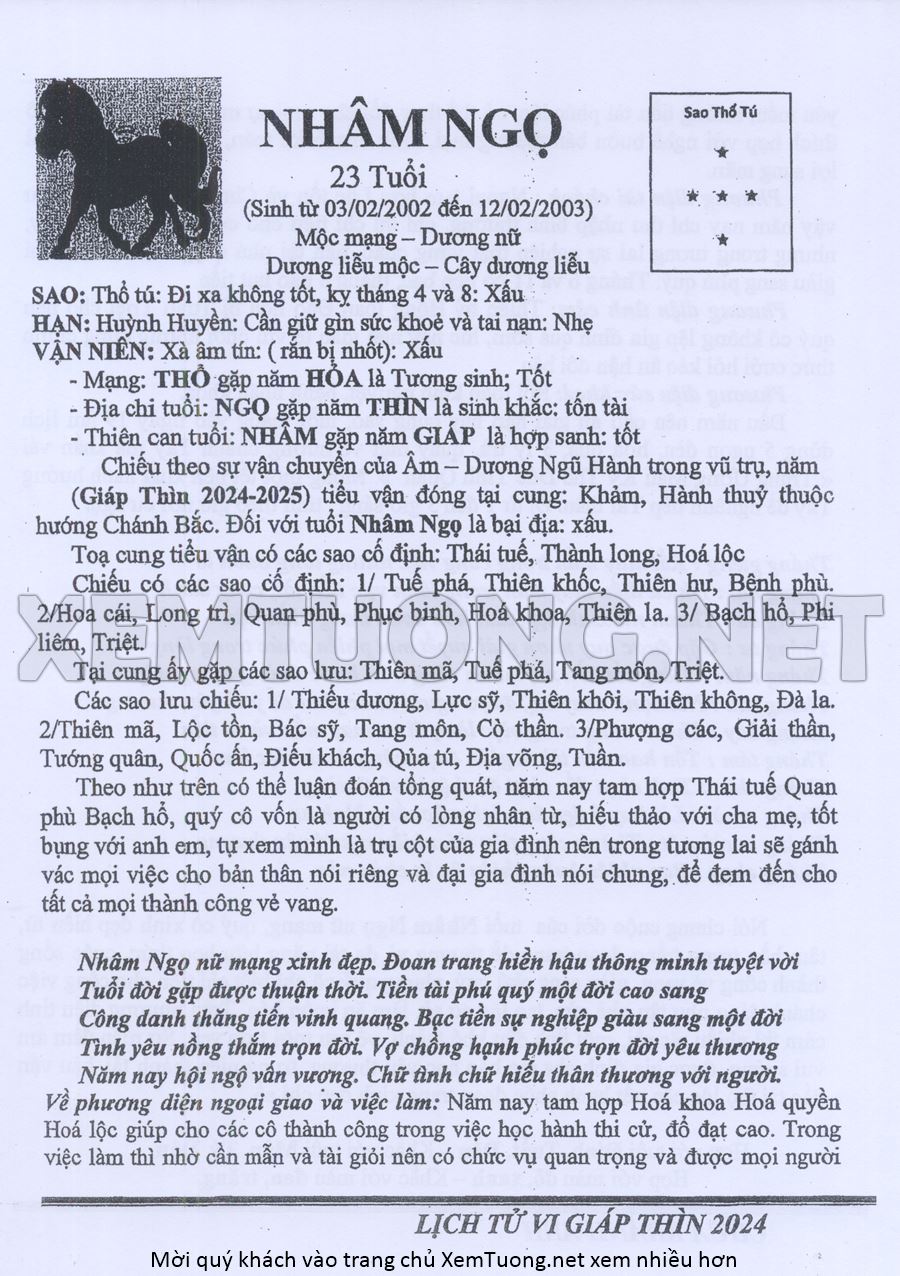 Tử Vi Năm Quý Mão 2023 mạng nữ NHÂM NGỌ