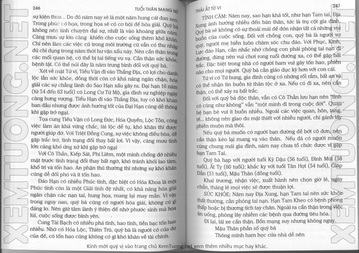 (Lưu ý: Thái Ất Tử Vi được chúng tôi scan từ sách, do đó mỗi tuổi sẽ có nhiều trang, quý vị xem xong hãy nhấn vào trang tiếp theo để xem hết phần tuổi muốn xem. Nếu quý vị xem bằng điện thoại thì hãy kéo qua lại để xem phần bị khuất.)