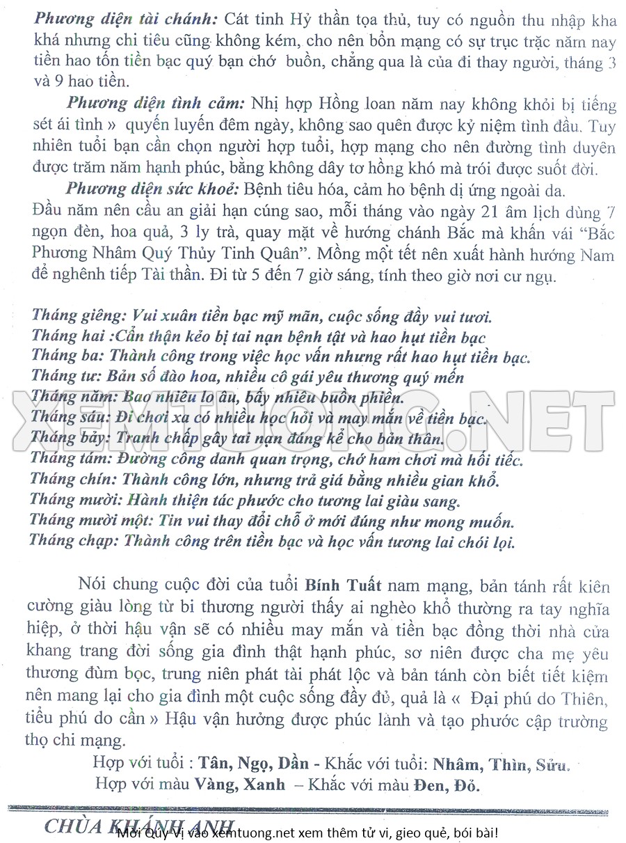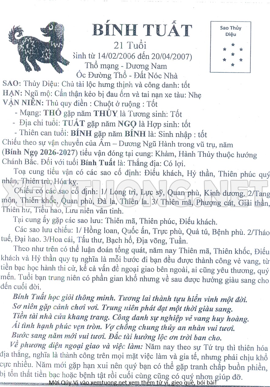 Tử Vi Năm Bính Ngọ 2026 mạng nam BÍNH TUẤT