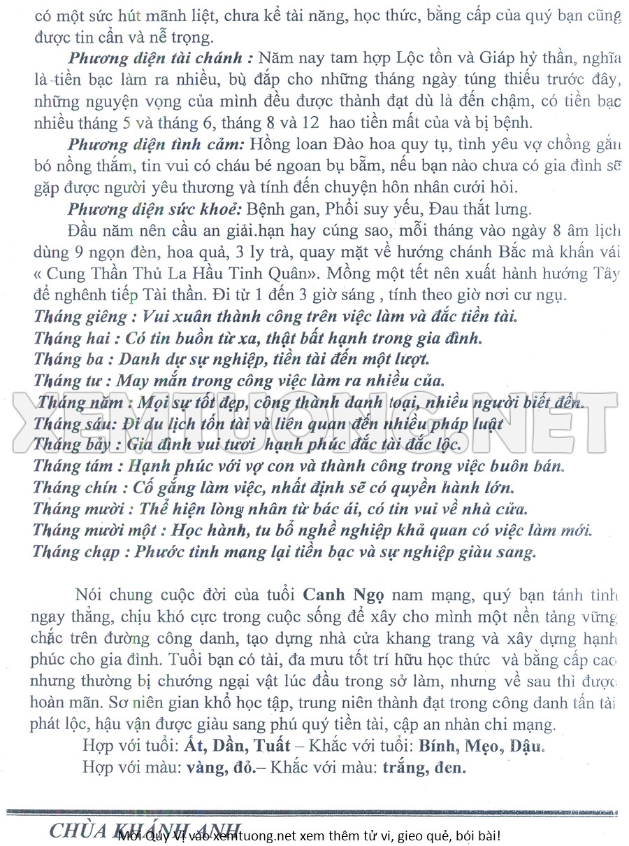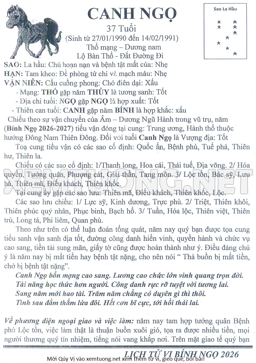 Tử Vi Năm Bính Ngọ 2026 mạng nam CANH NGỌ