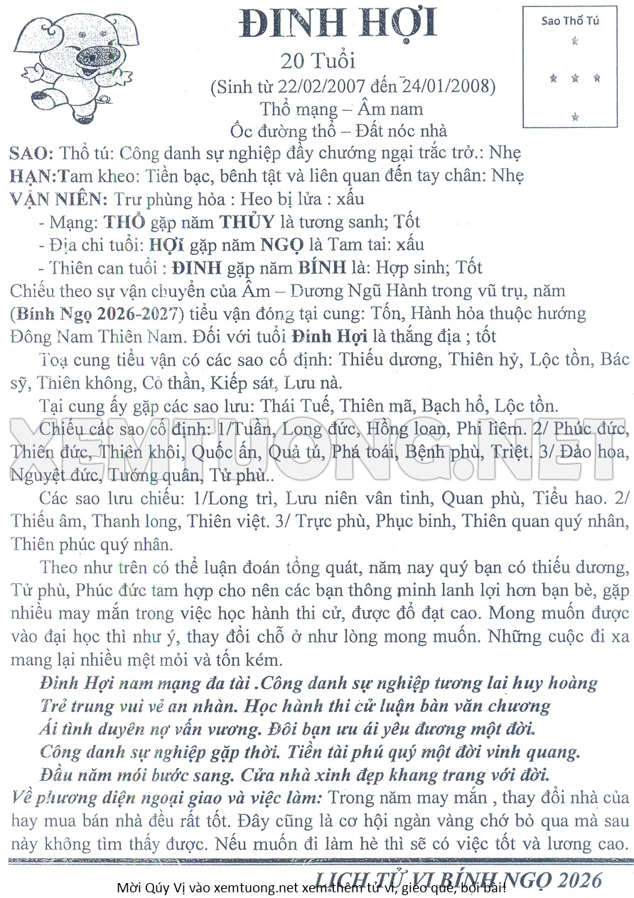 Tử Vi Năm Bính Ngọ 2026 mạng nam ĐINH HỢI