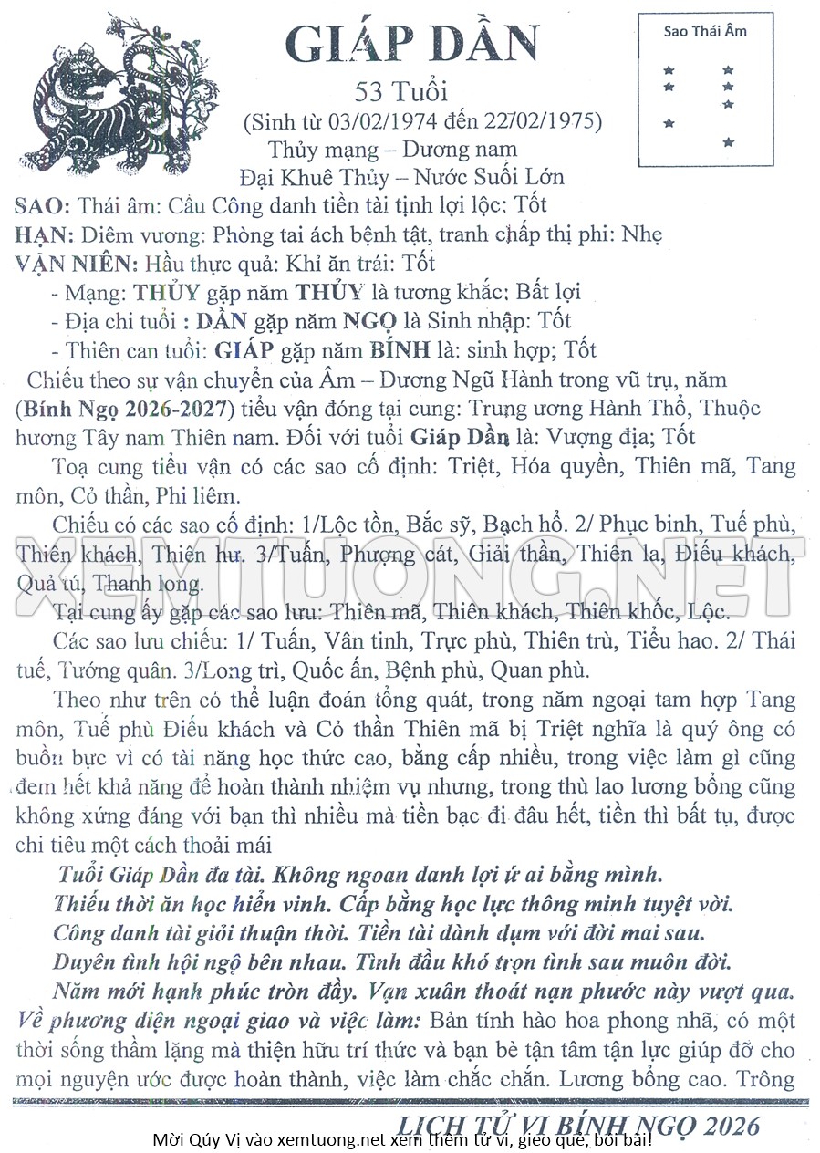 Tử Vi Năm Bính Ngọ 2026 mạng nam GIÁP DẦN