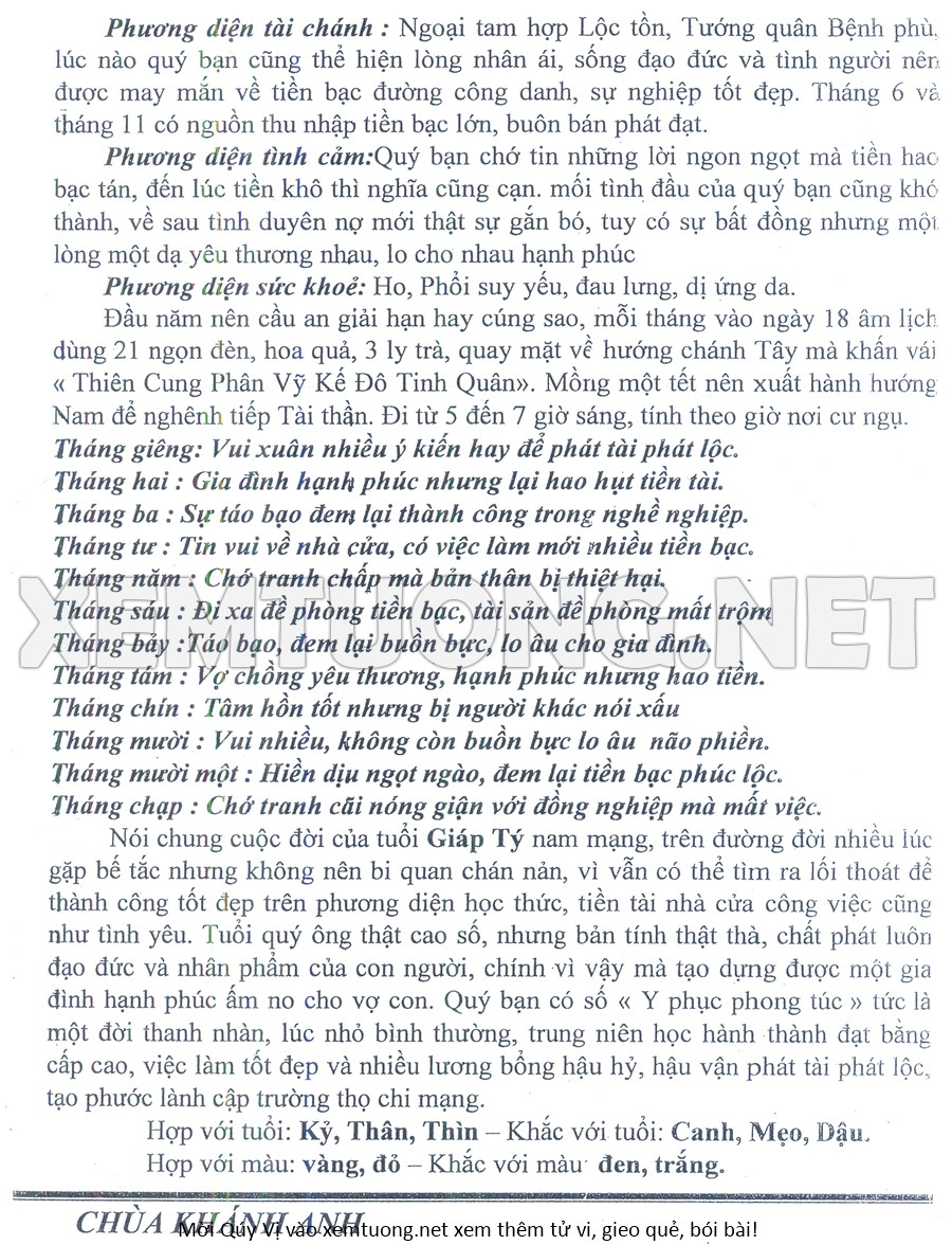 Tử Vi Năm Bính Ngọ 2026 mạng nam GIÁP TÝ