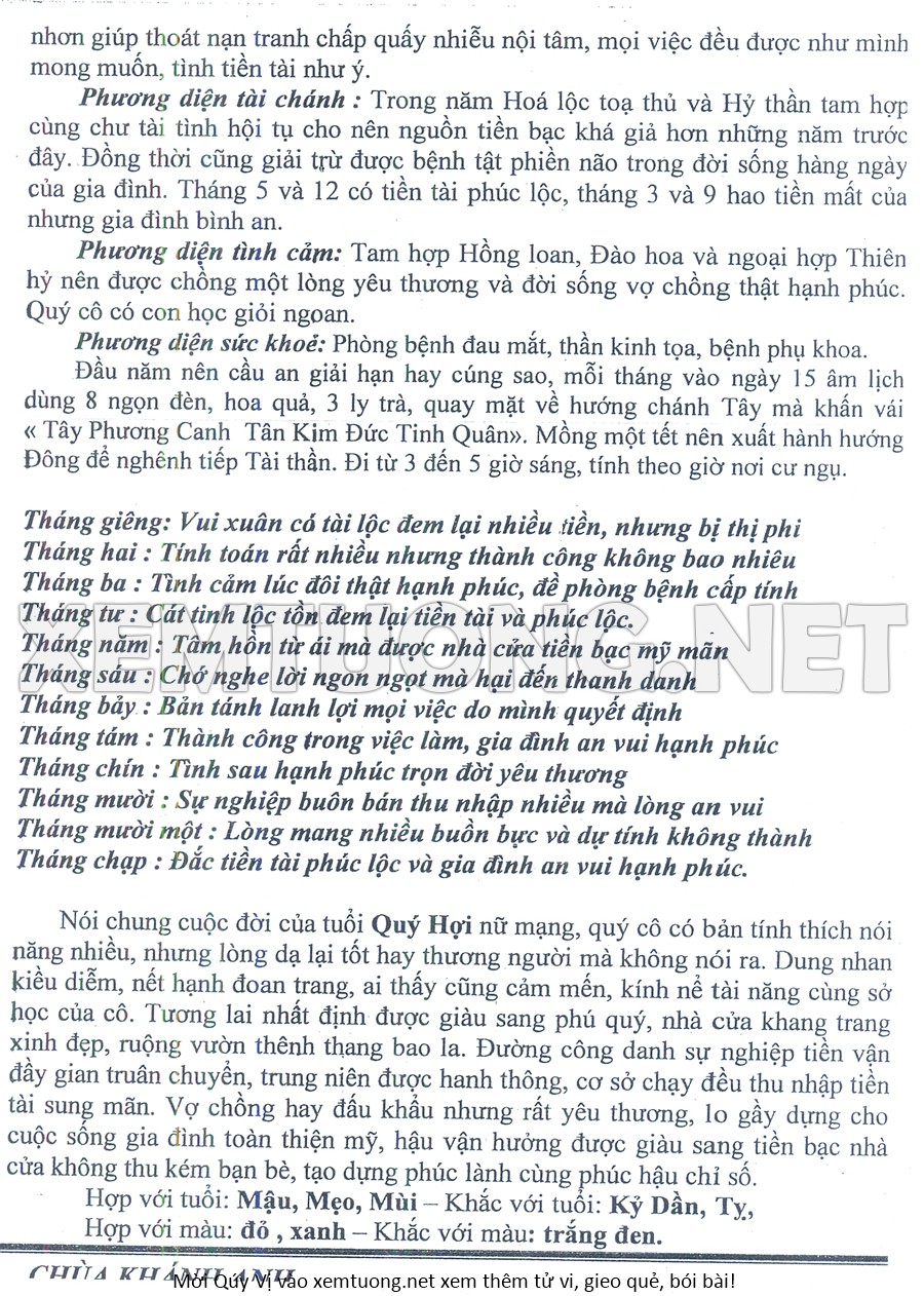 Tử Vi Năm Bính Ngọ 2026 mạng nữ QUÝ HỢI