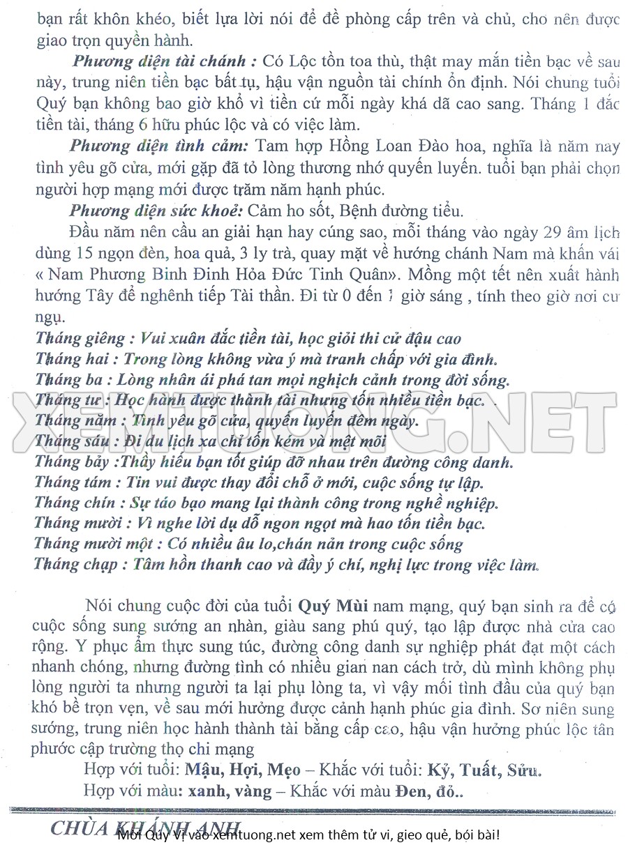 Tử Vi Năm Bính Ngọ 2026 mạng nam Qúy Mùi