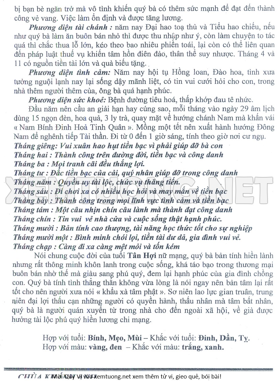 Tử Vi Năm Bính Ngọ 2026 mạng nữ TÂN HỢI