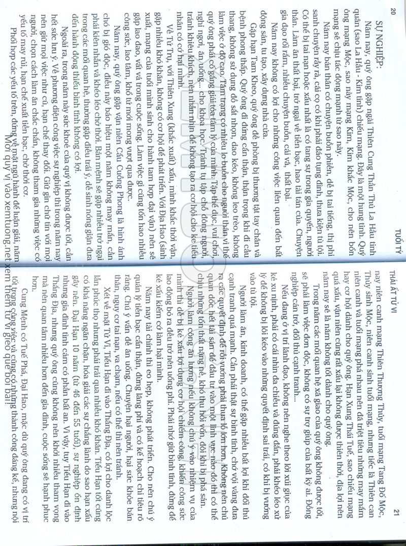(Lưu ý: Thái Ất Tử Vi được chúng tôi scan từ sách, do đó mỗi tuổi sẽ có nhiều trang, quý vị xem xong hãy nhấn vào trang tiếp theo để xem hết phần tuổi muốn xem. Nếu quý vị xem bằng điện thoại thì hãy kéo qua lại để xem phần bị khuất.)