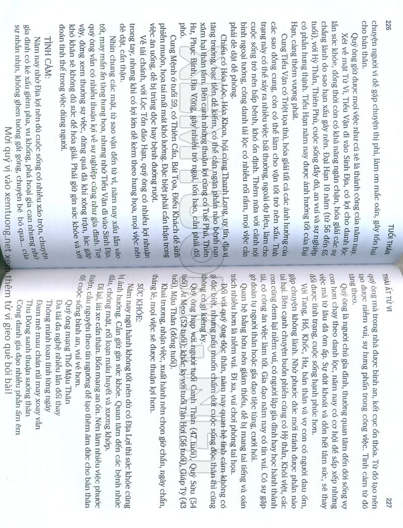 (Lưu ý: Thái Ất Tử Vi được chúng tôi scan từ sách, do đó mỗi tuổi sẽ có nhiều trang, quý vị xem xong hãy nhấn vào trang tiếp theo để xem hết phần tuổi muốn xem. Nếu quý vị xem bằng điện thoại thì hãy kéo qua lại để xem phần bị khuất.)