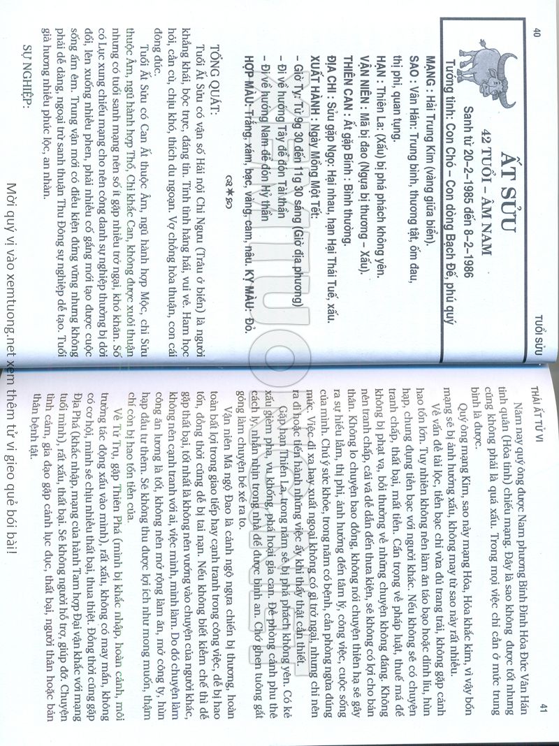 (Lưu ý: Thái Ất Tử Vi được chúng tôi scan từ sách, do đó mỗi tuổi sẽ có nhiều trang, quý vị xem xong hãy nhấn vào trang tiếp theo để xem hết phần tuổi muốn xem. Nếu quý vị xem bằng điện thoại thì hãy kéo qua lại để xem phần bị khuất.)
