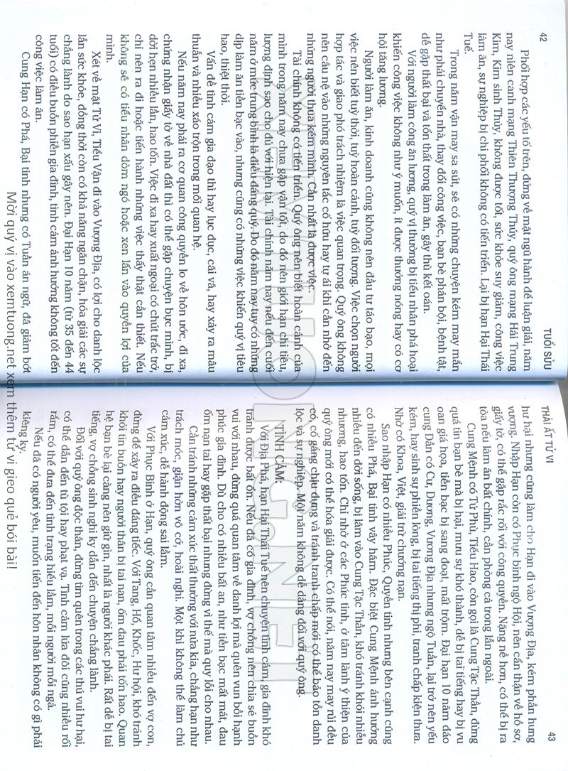 (Lưu ý: Thái Ất Tử Vi được chúng tôi scan từ sách, do đó mỗi tuổi sẽ có nhiều trang, quý vị xem xong hãy nhấn vào trang tiếp theo để xem hết phần tuổi muốn xem. Nếu quý vị xem bằng điện thoại thì hãy kéo qua lại để xem phần bị khuất.)