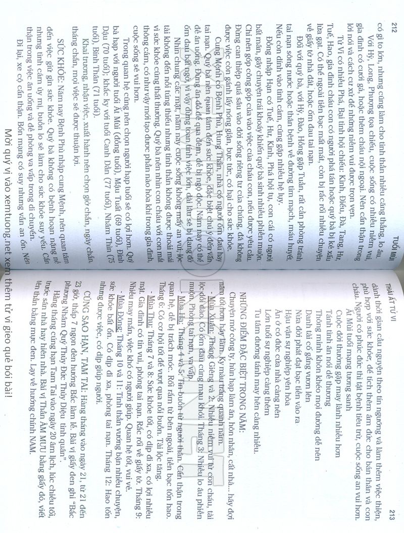 (Lưu ý: Thái Ất Tử Vi được chúng tôi scan từ sách, do đó mỗi tuổi sẽ có nhiều trang, quý vị xem xong hãy nhấn vào trang tiếp theo để xem hết phần tuổi muốn xem. Nếu quý vị xem bằng điện thoại thì hãy kéo qua lại để xem phần bị khuất.)
