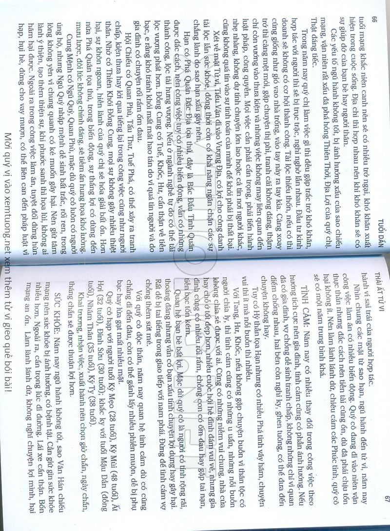 (Lưu ý: Thái Ất Tử Vi được chúng tôi scan từ sách, do đó mỗi tuổi sẽ có nhiều trang, quý vị xem xong hãy nhấn vào trang tiếp theo để xem hết phần tuổi muốn xem. Nếu quý vị xem bằng điện thoại thì hãy kéo qua lại để xem phần bị khuất.)