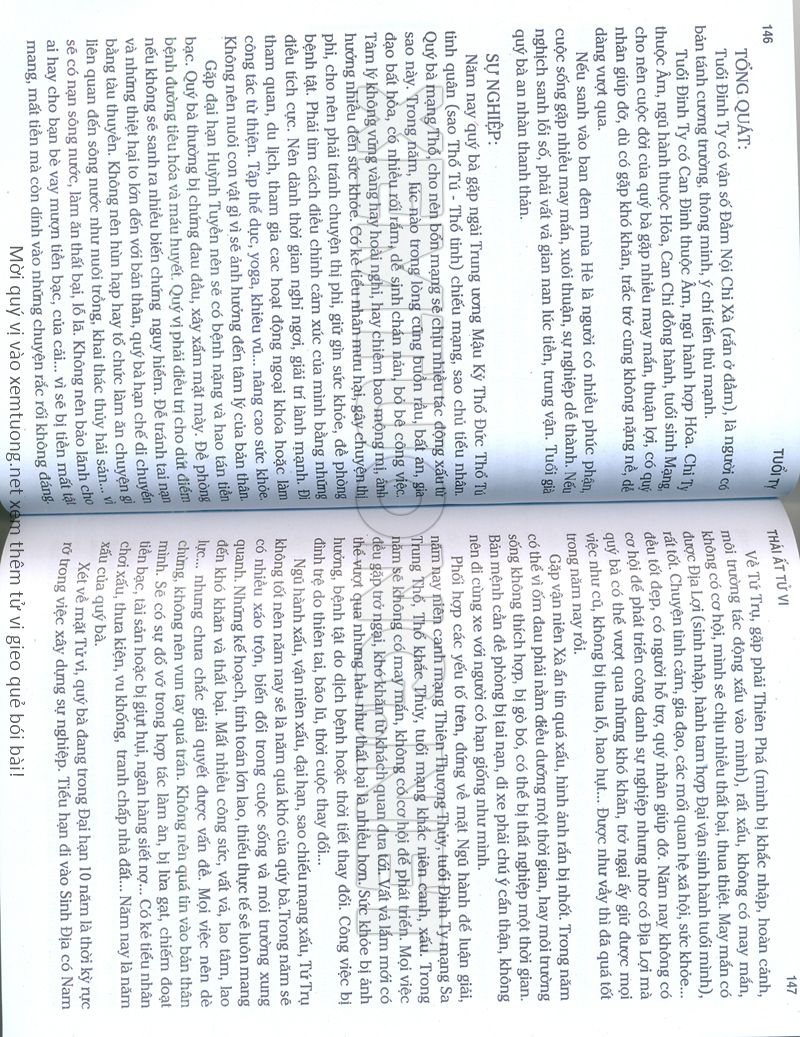 (Lưu ý: Thái Ất Tử Vi được chúng tôi scan từ sách, do đó mỗi tuổi sẽ có nhiều trang, quý vị xem xong hãy nhấn vào trang tiếp theo để xem hết phần tuổi muốn xem. Nếu quý vị xem bằng điện thoại thì hãy kéo qua lại để xem phần bị khuất.)