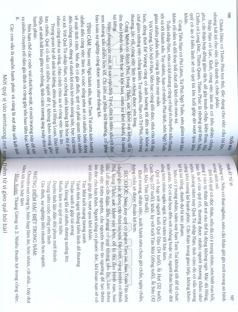 (Lưu ý: Thái Ất Tử Vi được chúng tôi scan từ sách, do đó mỗi tuổi sẽ có nhiều trang, quý vị xem xong hãy nhấn vào trang tiếp theo để xem hết phần tuổi muốn xem. Nếu quý vị xem bằng điện thoại thì hãy kéo qua lại để xem phần bị khuất.)